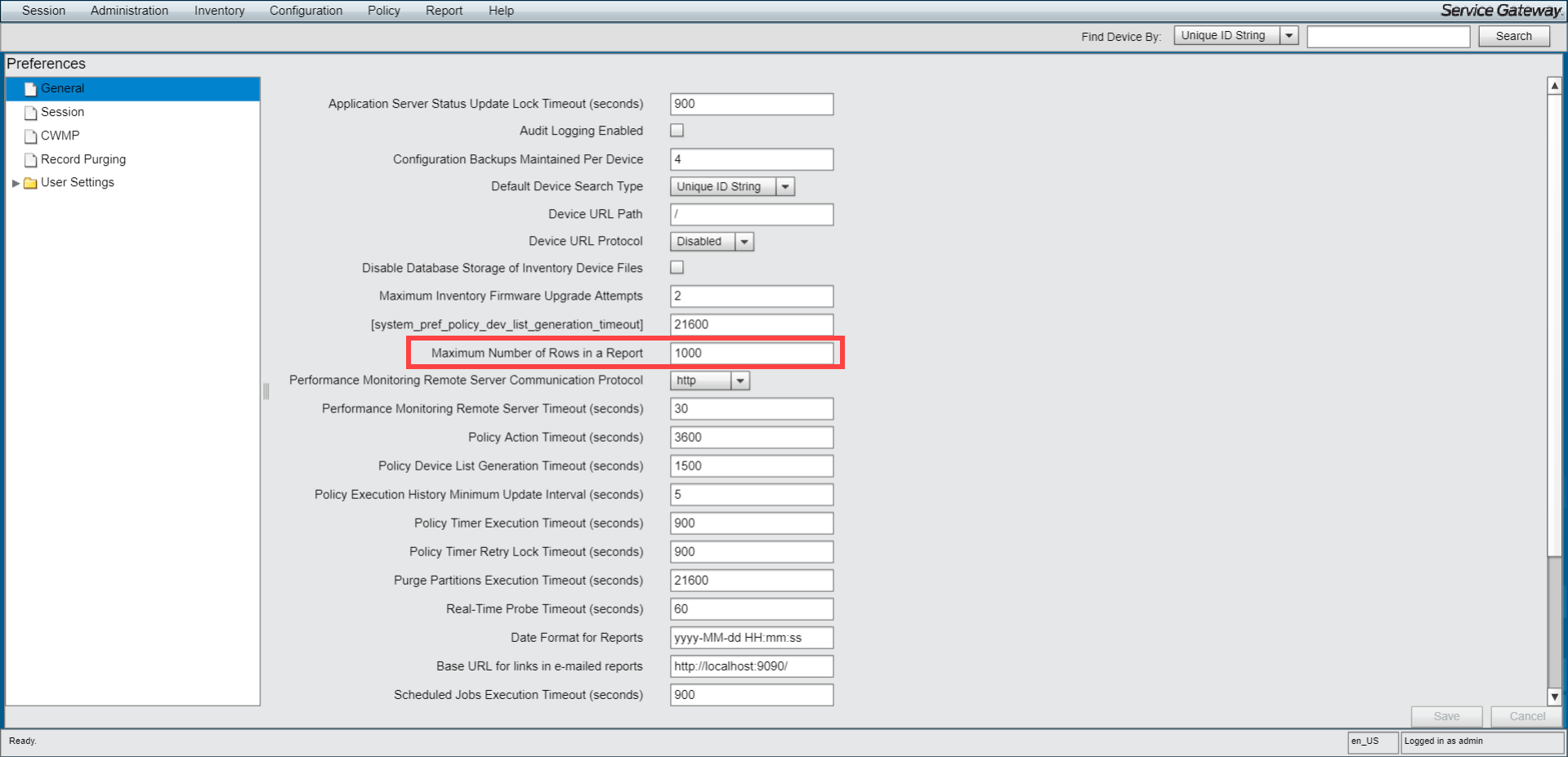 Note: Prefer keeping the Maximum Number of Rows in a Report value to a lesser value, as running reports generating a large number of rows affects application/database performance.