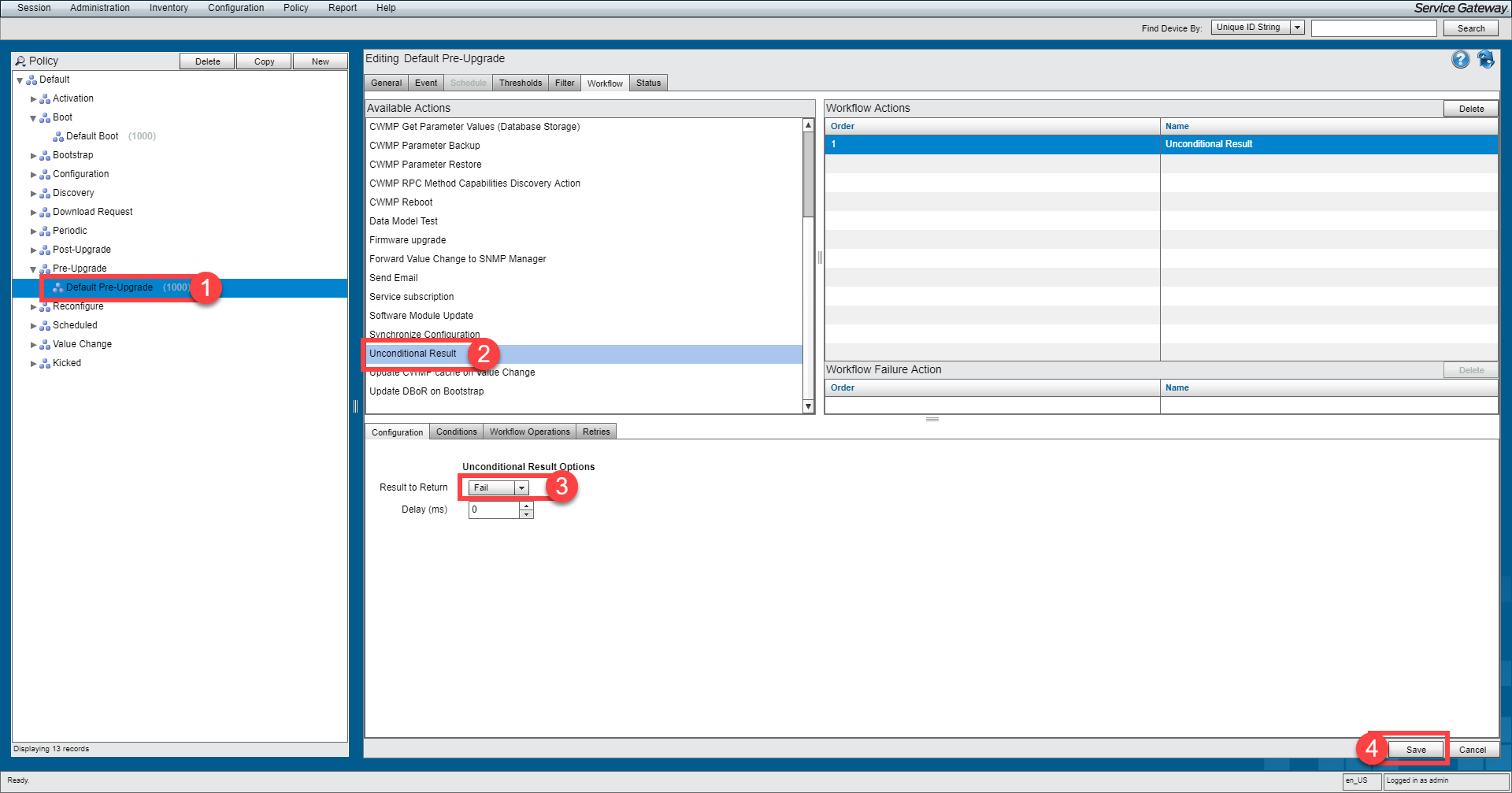Failing of Default Pre-Upgrade policy skips the Inventory Upgrade.