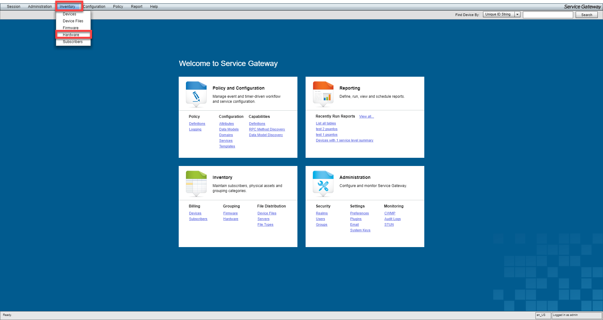 In ServiceGateway GUI browse to the Inventory > Hardware.